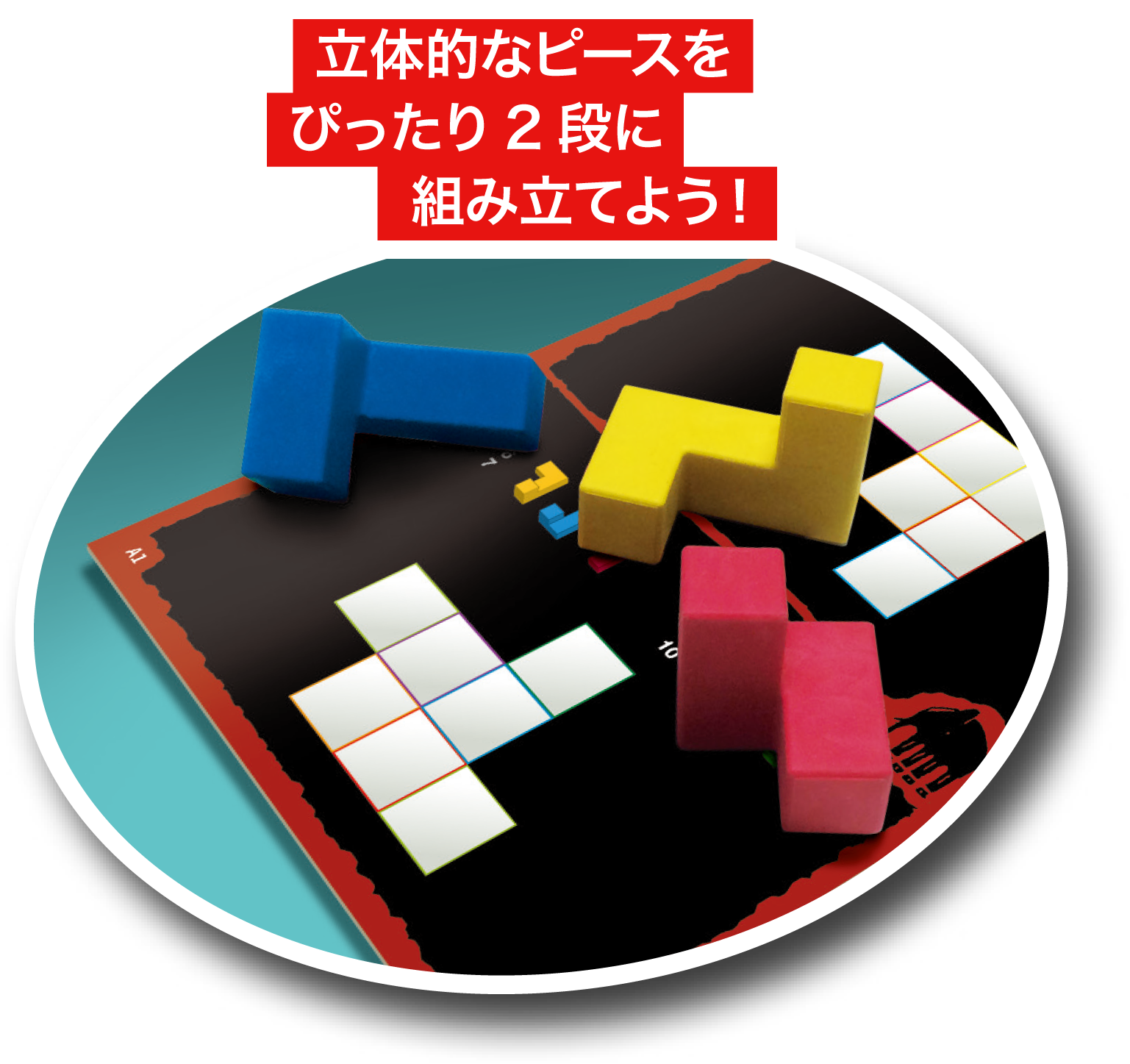 立体ピースを巧みに組み合わせ、ピッタリ2段に収めた時の爽快感。